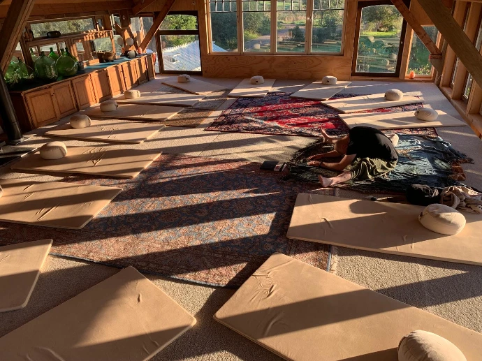 In deze bijeenkomsten wordt Yin voelbaar als iets dat je niet doet, maar iets waar je in zakt.